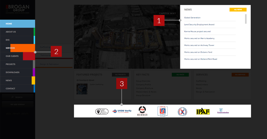 Housing a huge amount of projects, the new website for scaffolding giants Brogan Group helps convey the grand history of the company, whilst seamlessly alleviating the company’s brand to a modern web platform.