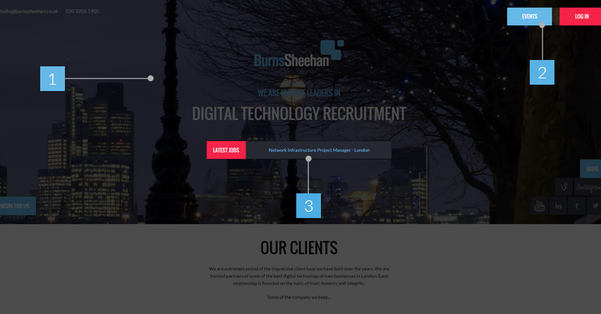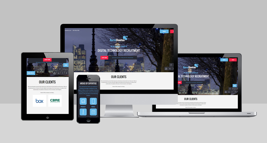 Sleek, silver and sophisticated website design for the technology recruiters Burns Sheehan.