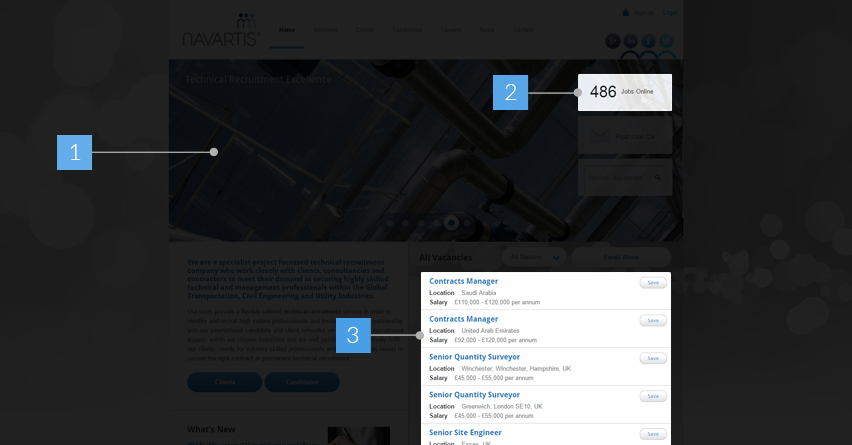 Our design for Doncaster based technical recruitment company Navartis is strong in both design and functionality, using a number of recruitment tools pioneered by Chris Curd Design.
