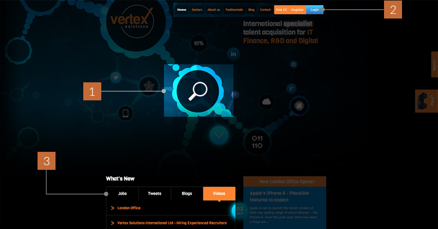 Renovate the Vertex brand image and create an innovative and highly interactive HTML5 website that will bring in new client prospects and candidates.